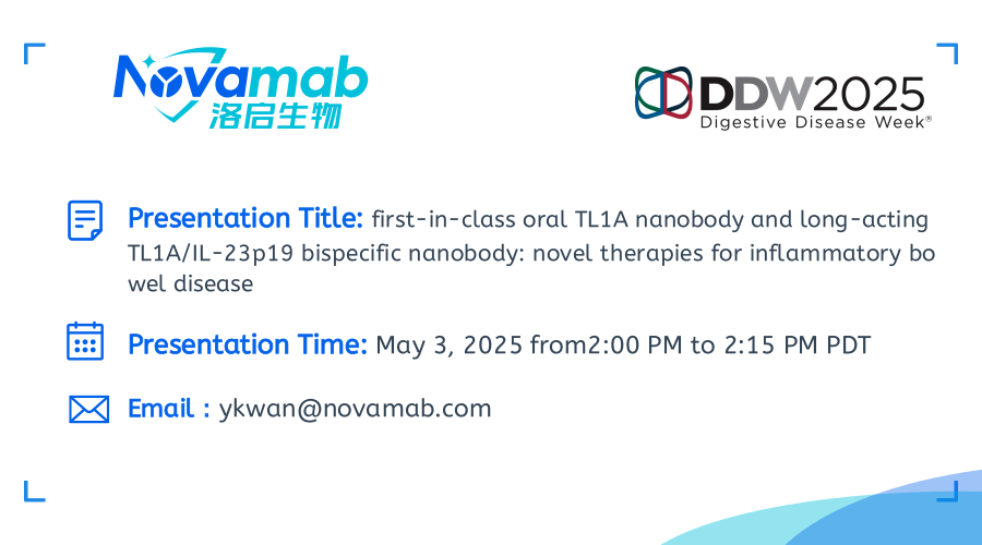 中国上海,2025年4月28日——上海SG胜游(中国)生物医药技术有限公司,一家致力于纳米抗体创新药研发的生物技术公司宣布:SG胜游(中国)生物将于当地时间5月3-6日参加在加利福尼亚州圣地亚哥举行的2025年美国消化疾病周(Digestive Disease Week,DDW)。届时SG胜游(中国)生物将展示在炎症性肠病(IBD)治疗领域的突破性研究成果——口服TL1A纳米抗体及长效TL1A双特异性抗体的开发进展。该创新疗法顺利获得独特的TL1A纳米抗体技术,实现了对IBD病理机制的精准靶向。